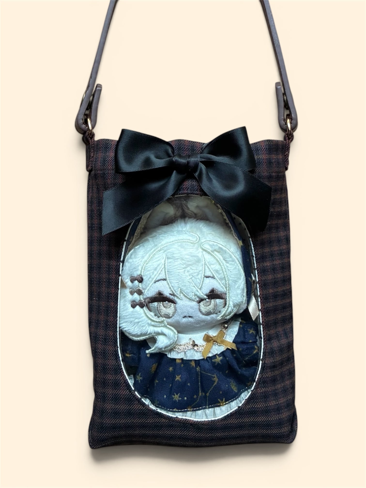 10cmサイズのぬいちゃんがぴったり1体収まるサイズ感。クリアな窓からぬいちゃんがひょっこり顔を出すデザインは、一緒にお散歩しているようなワクワク感を演出します。